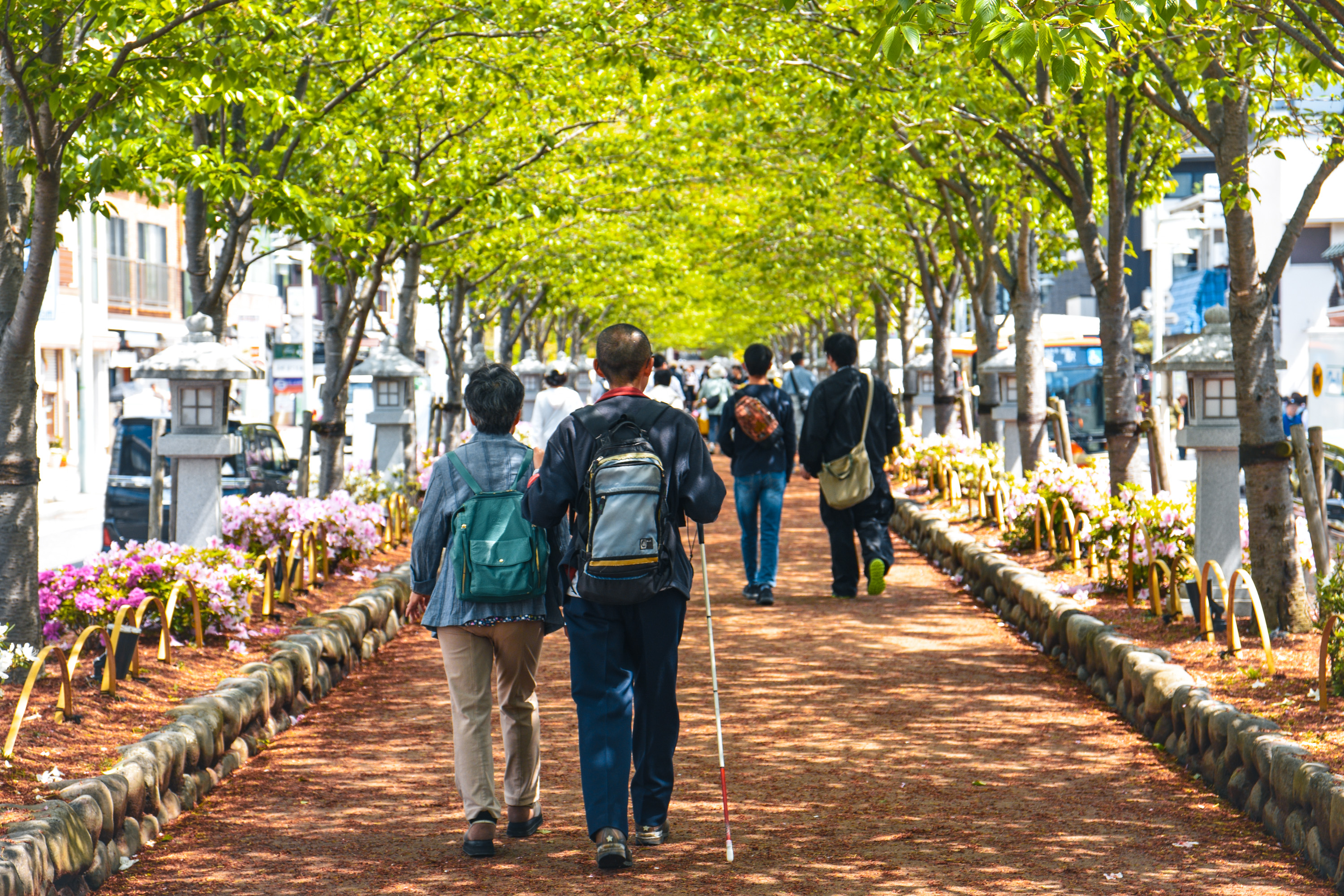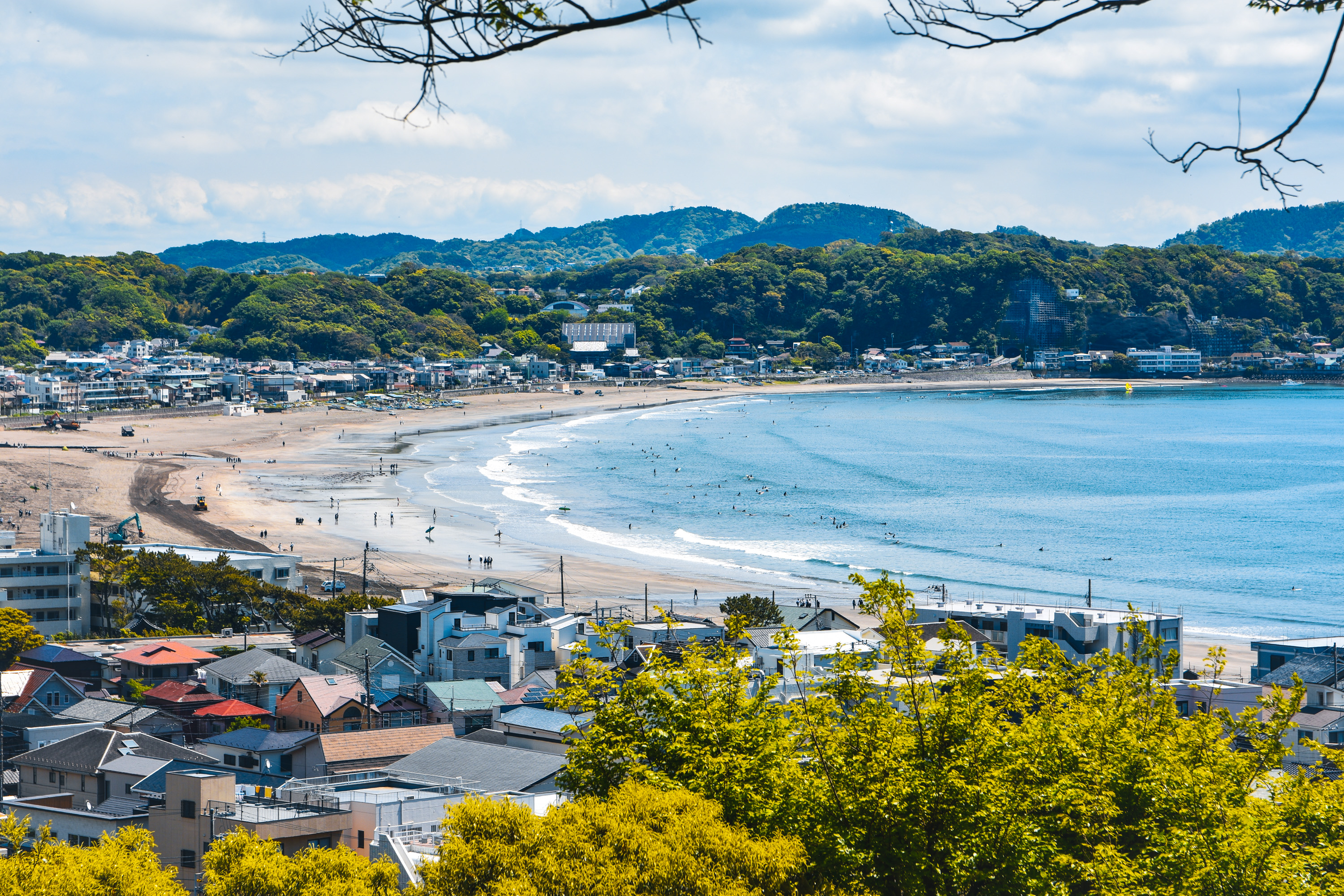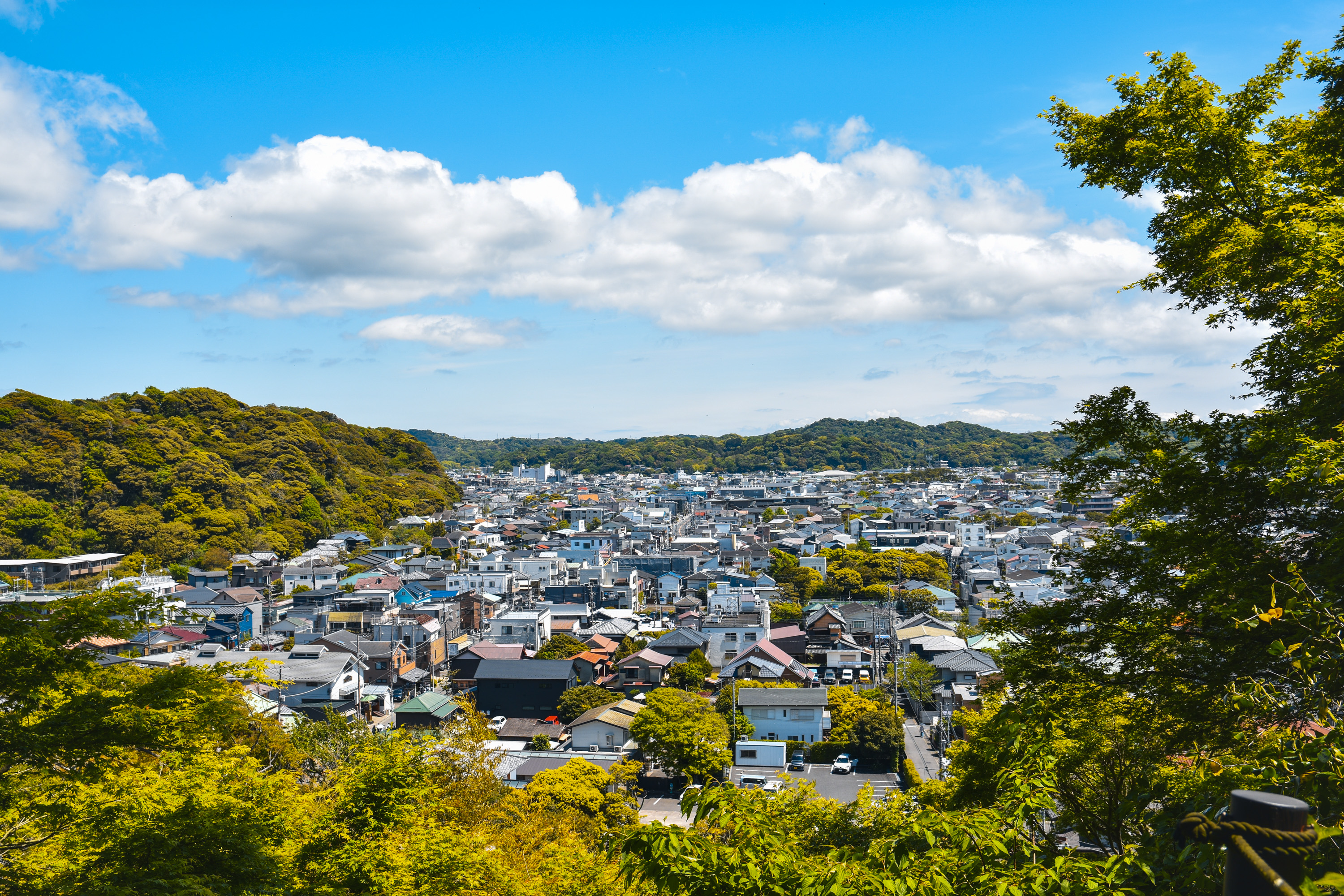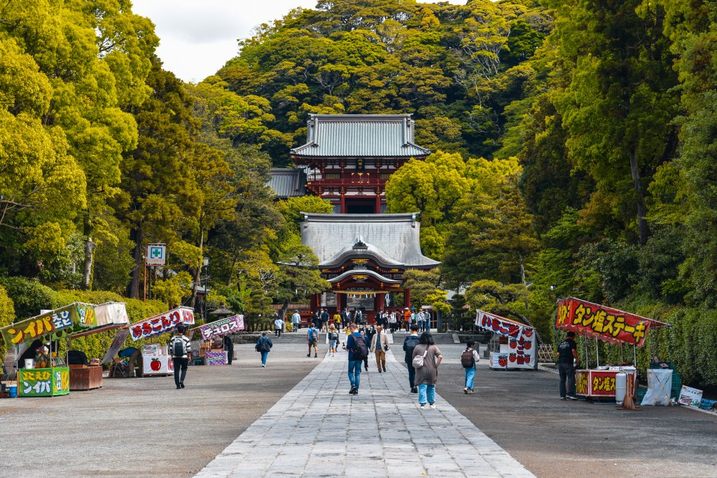 A straight, long road cuts through the town from the shoreline all the way up to the hills, and atop the grand staircase sits the red and green-bronze Tsurugaoka Hachimangu, a Shinto shrine established a thousand years ago.