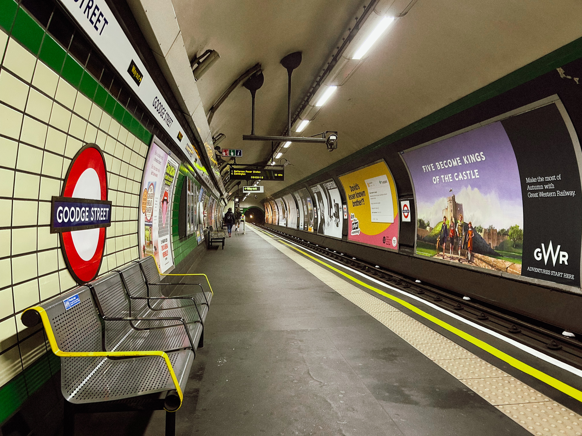 Without breaking stride I saw the logo for the London Underground in the distance and ditched the trains for the tube. If they were running it would take a little over an hour to get into the city (whereas my planned train took 40 min). It was now 8:30 pm and the 10pm deadline loomed. I would arrive in Leicester Square at 9:40pm—about a mile from the hotel. A 20 min mile seemed… possible?