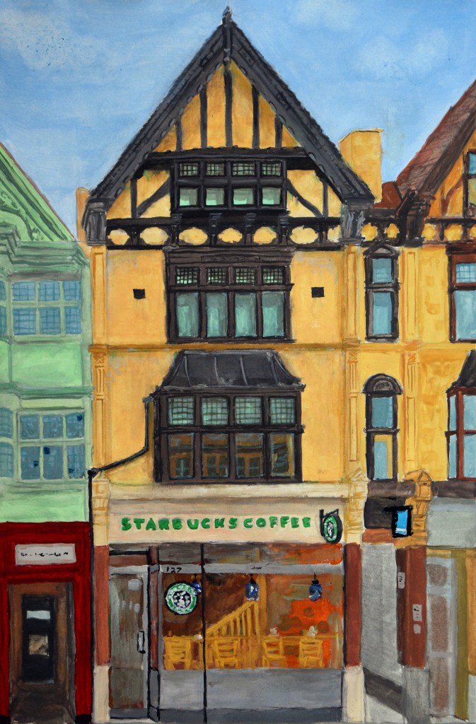 Oxford was still Oxford and I was glad to see they had kept the red door at Stanford House. The High Street Starbucks I photographed and recently painted was gone, now a local bank. Tourists were plentiful. I noticed and overheard more gray-haired nostalgia seekers than I had before, pointing at things they had known, perhaps because I was now one of them.